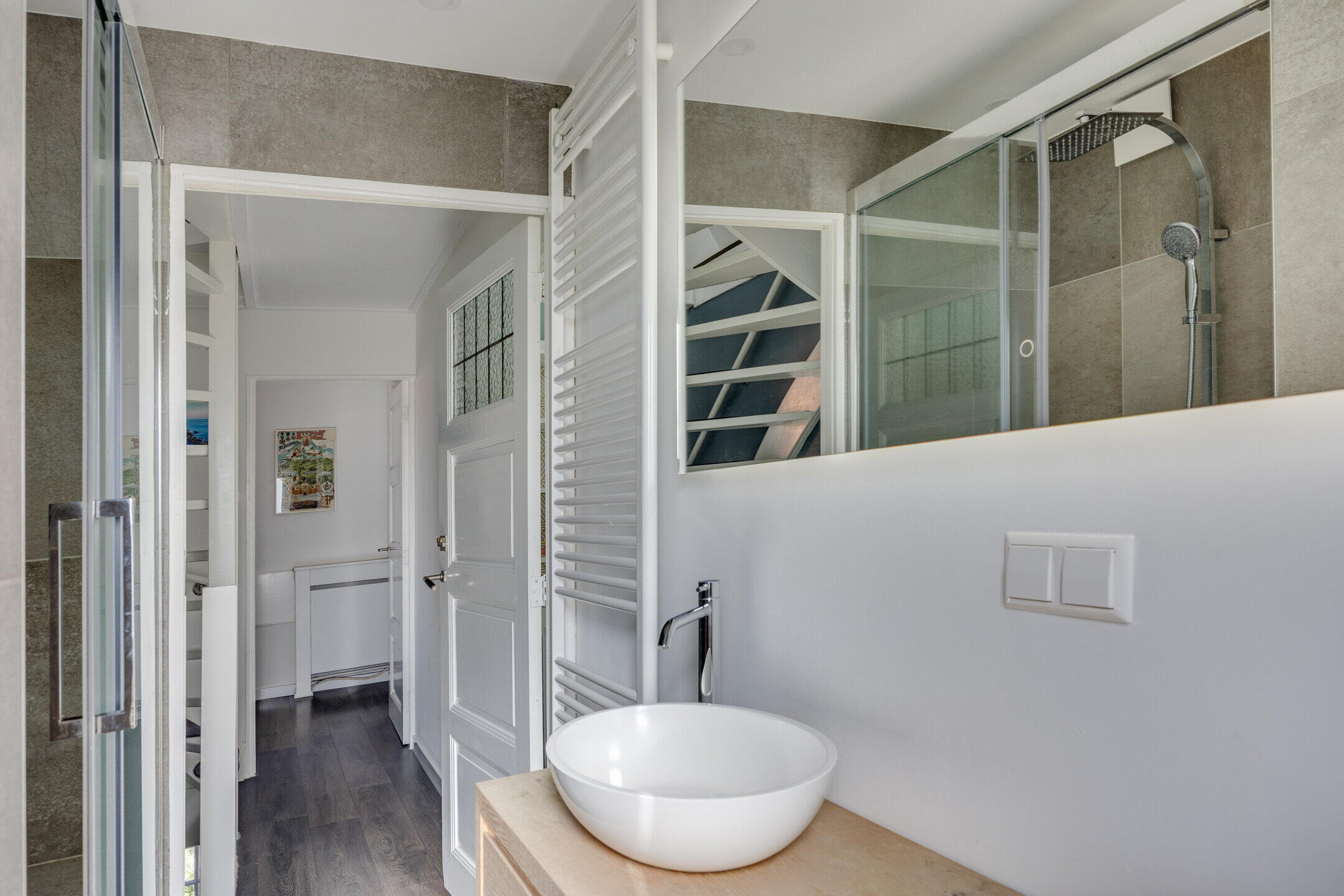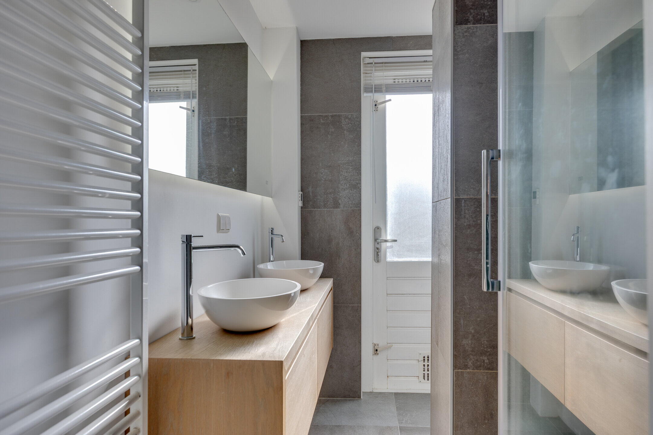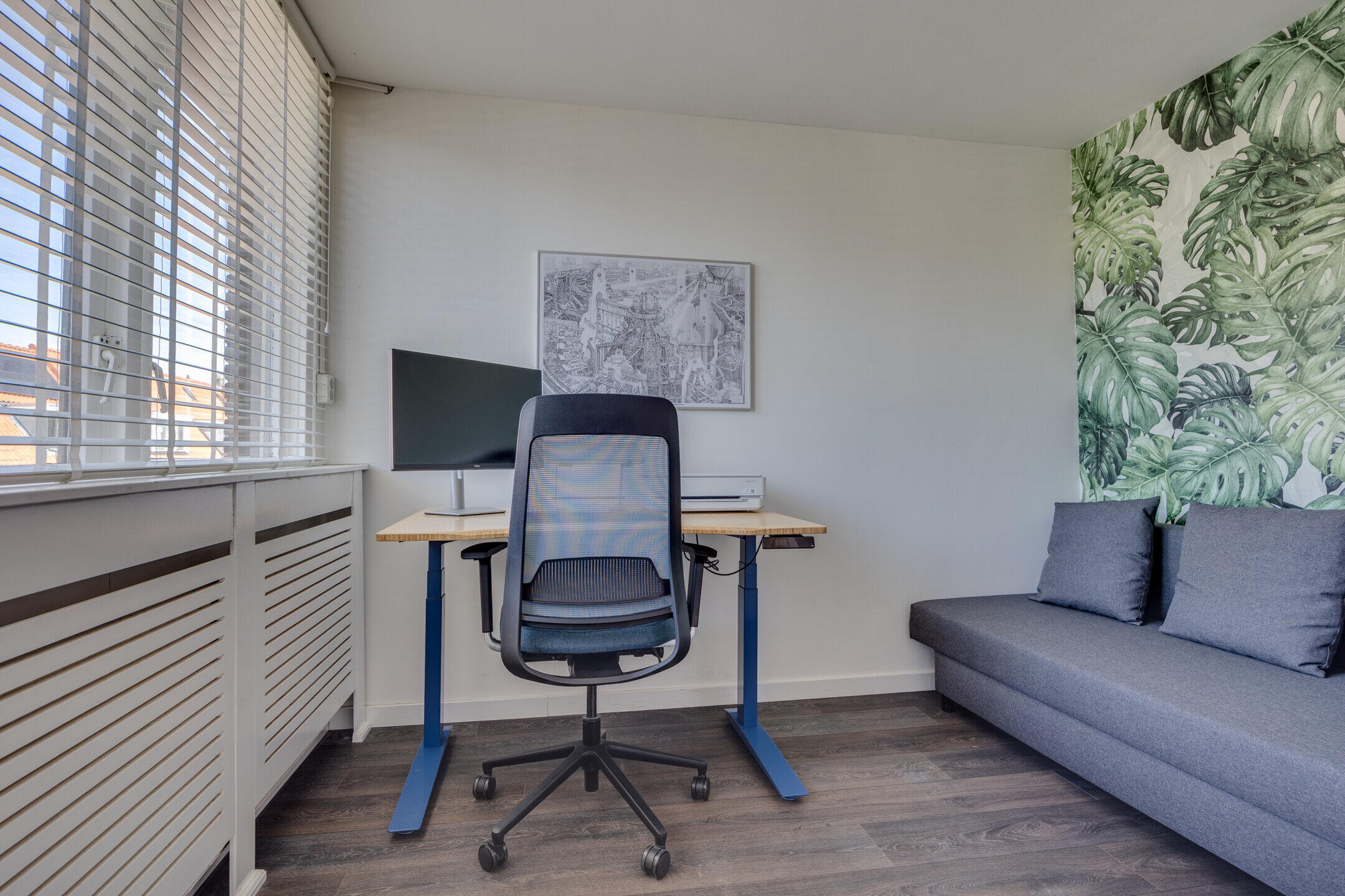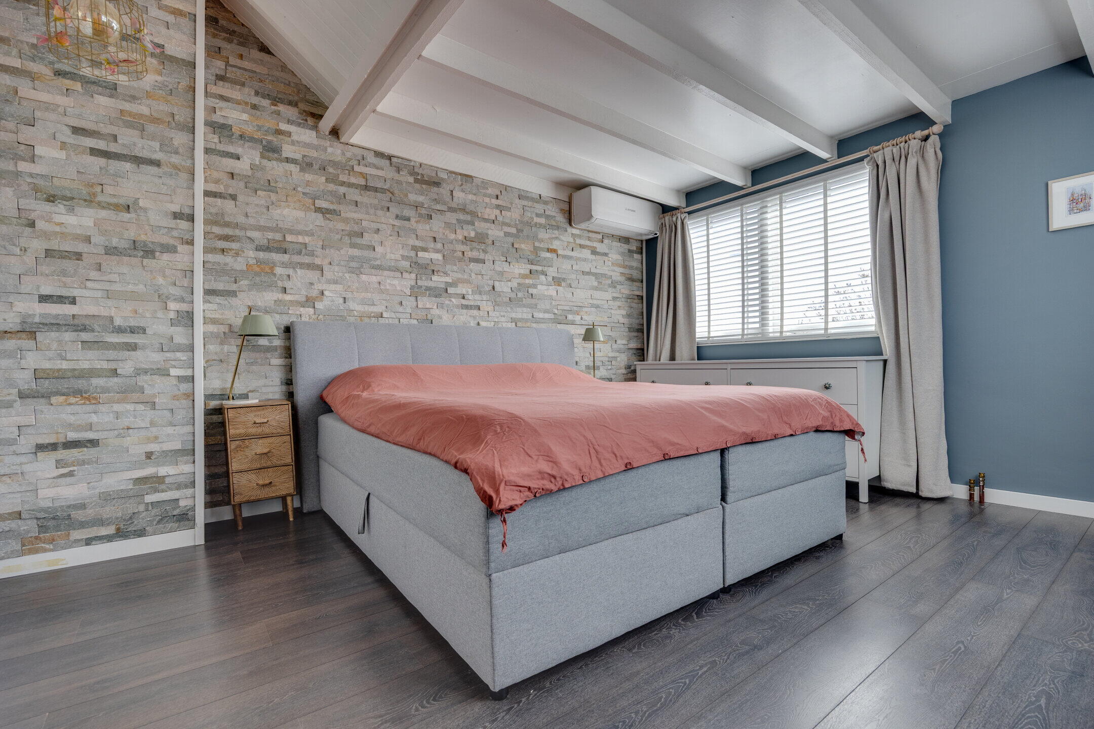 Op de eerste verdieping vind je twee slaapkamers, een verzorgde badkamer (2018) met dubbele wastafel, inloopregendouche en tweede toilet, én toegang tot het ruime dakterras van circa 13 m². Ideaal om van de lentedagen te genieten. Op de tweede verdieping wacht een derde slaapkamer met airconditioning en fraai uitzicht over de Amersfoortse daken.