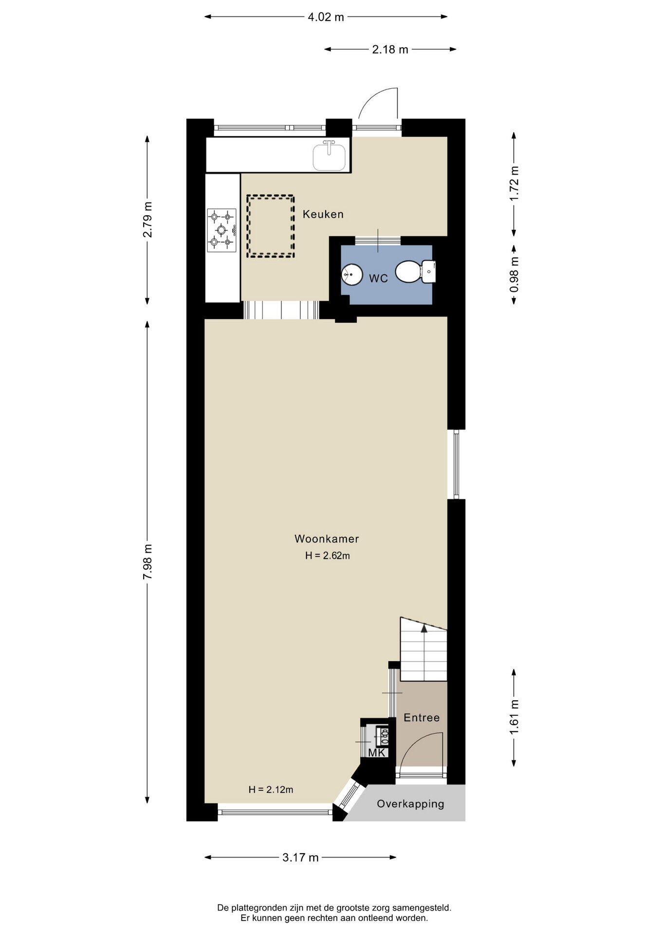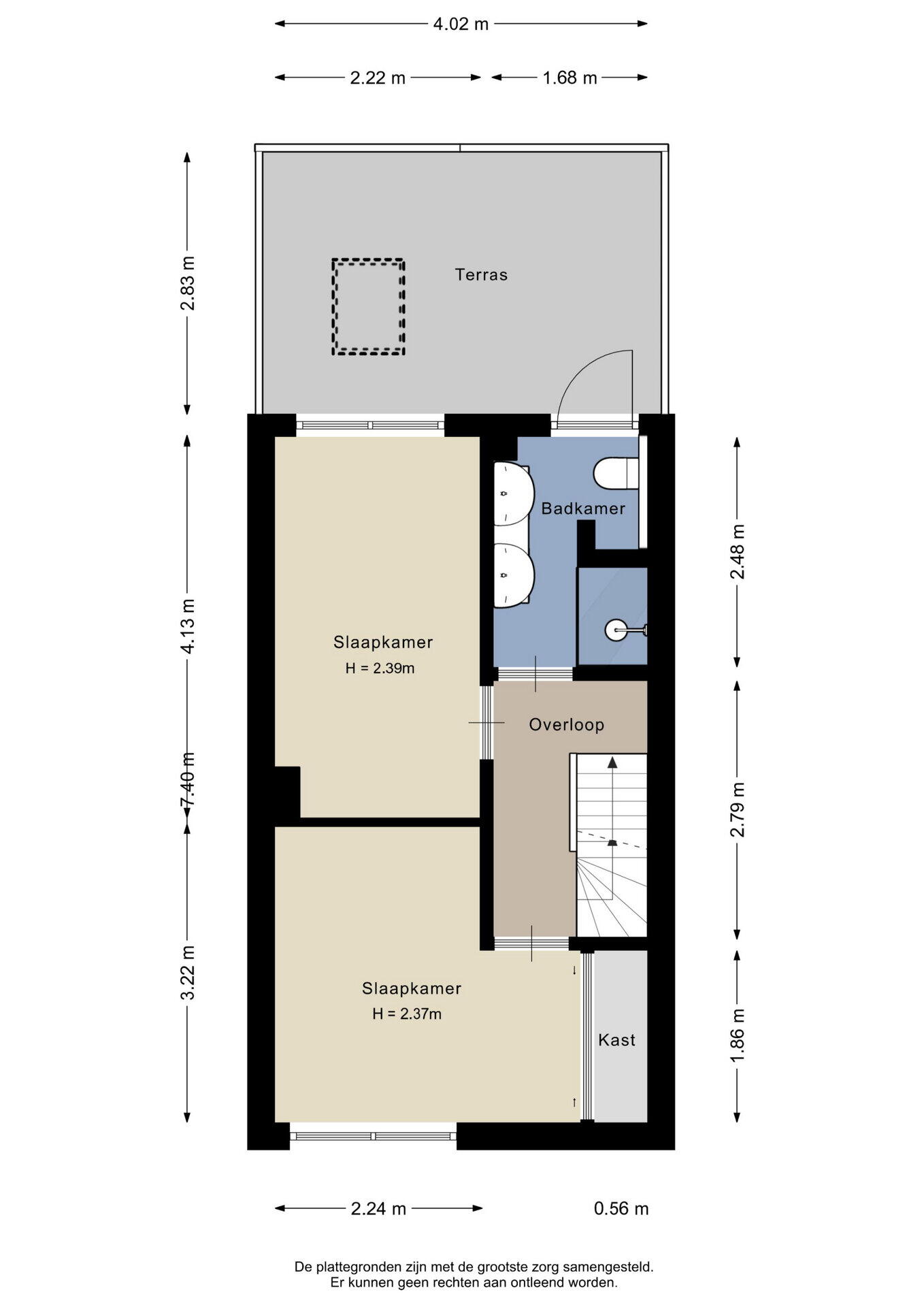 - 33 m² (9.3 meter diep en 4.4 meter breed)